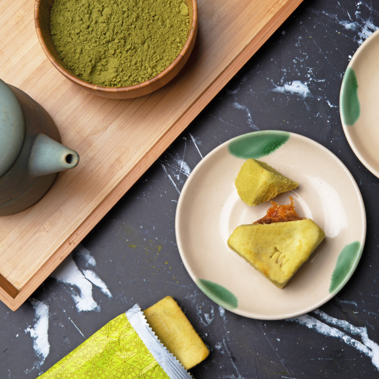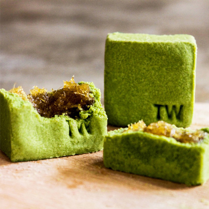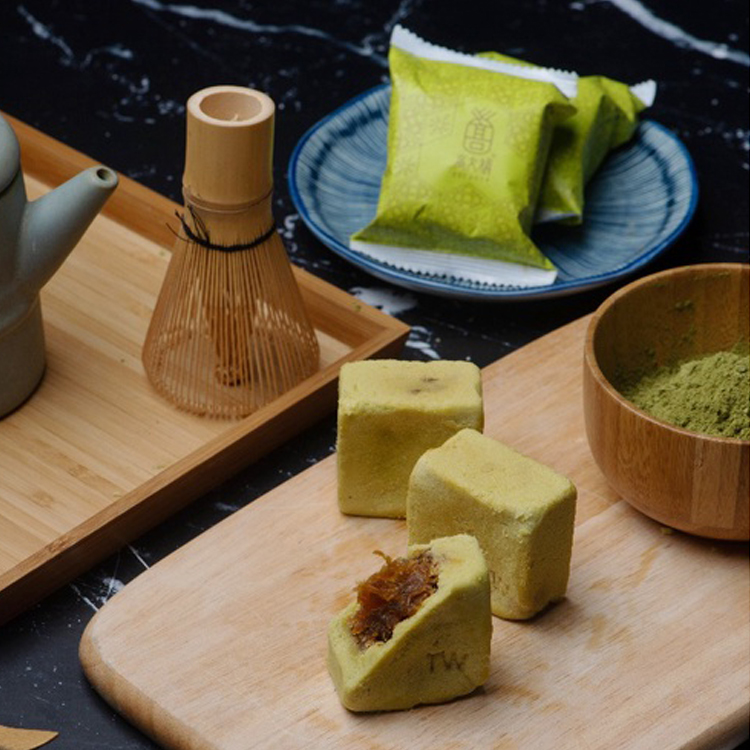 外層的抹茶清香酥皮包覆著鳳梨酸甜內餡,