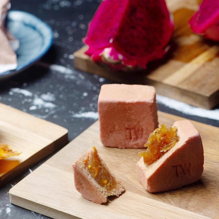 外層酥皮使用臺灣火龍果研磨成粉 放入外皮中
