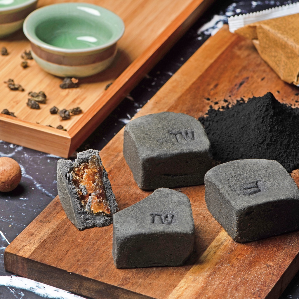 黑金桂圓酥 上選本地台南東山煙燻桂圓搭配冬瓜 外層竹炭粉製成的酥皮包覆著香醇溫潤的桂圓內餡