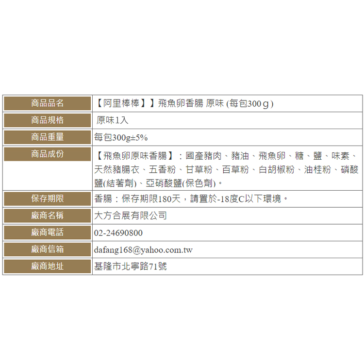 品名:飛魚卵原味香腸
