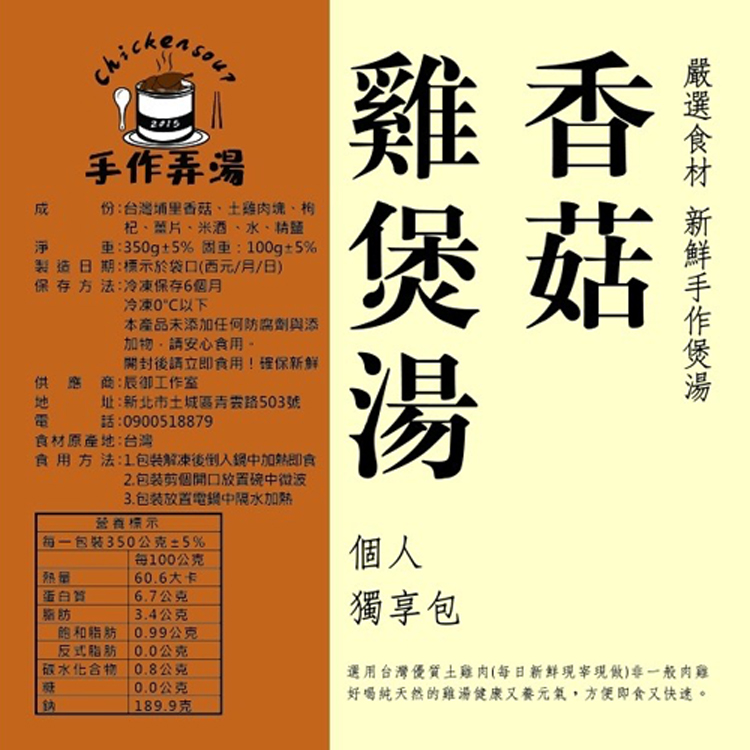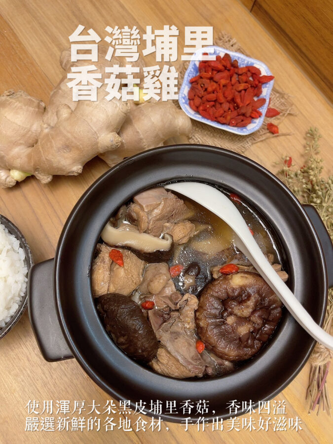 ➤使用台灣農產埔里黑皮香菇,渾厚大朵!湯頭屬於清淡型,有老薑驅寒暖胃。