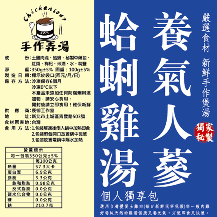 手作弄湯│秘製人蔘蛤蠣雞湯-雙享包