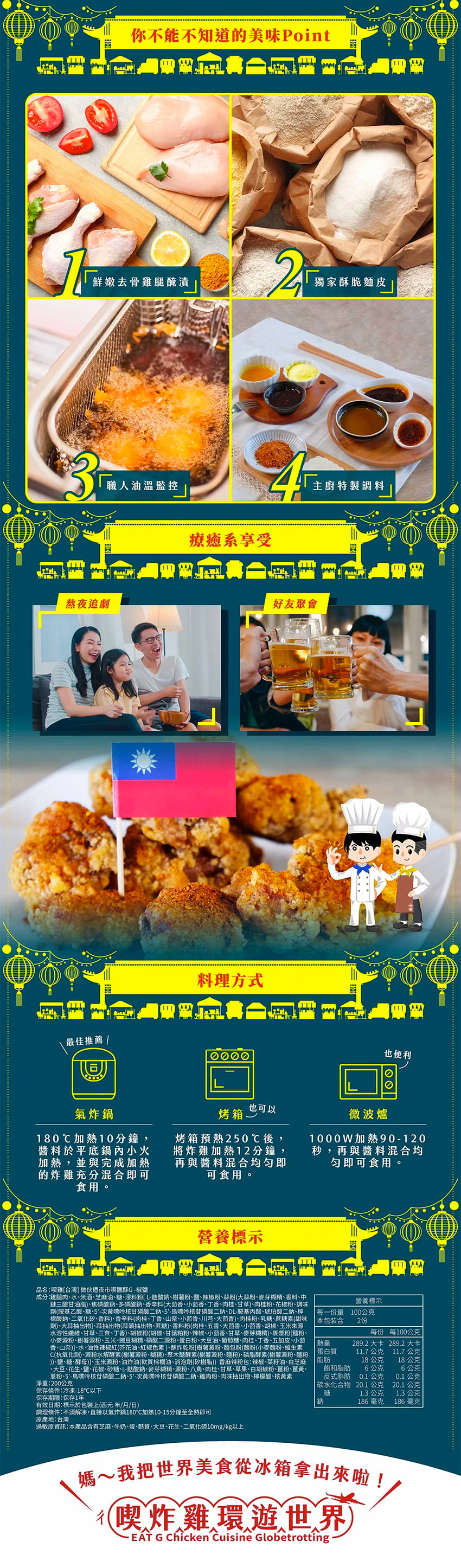 台灣必吃的國民美食『鹹酥雞』,獨家椒鹽醃漬配方,完美勾勒出台式靈魂。