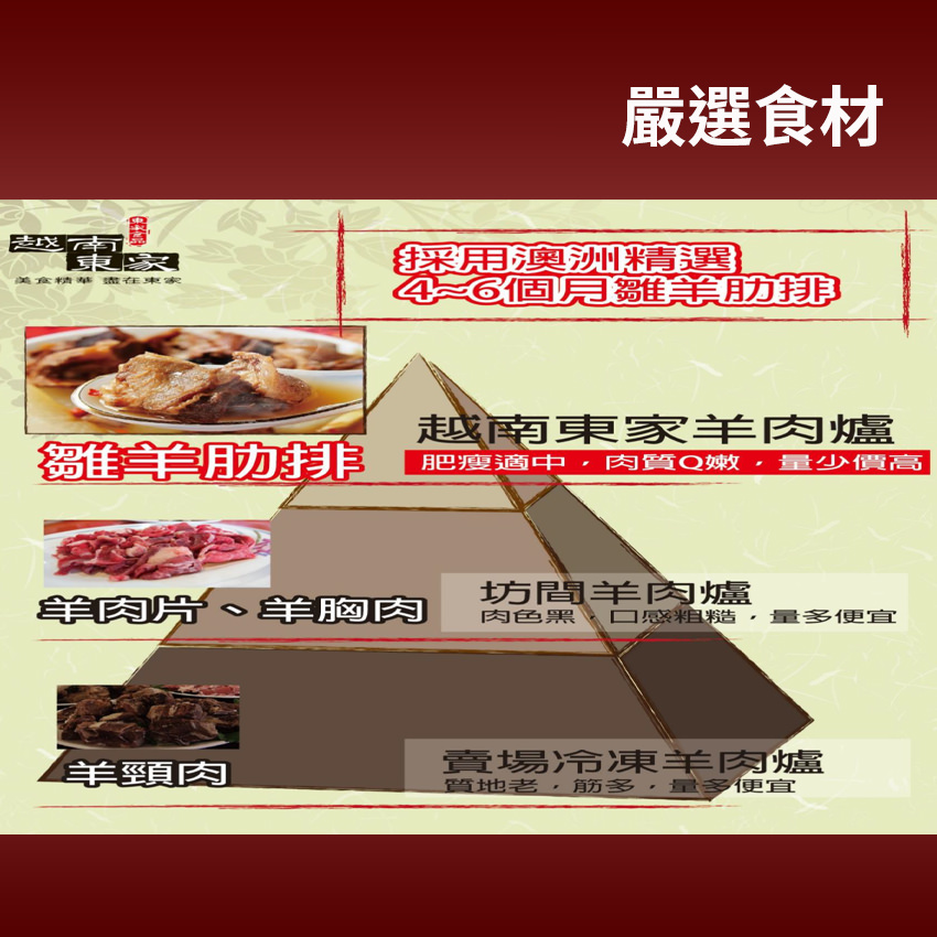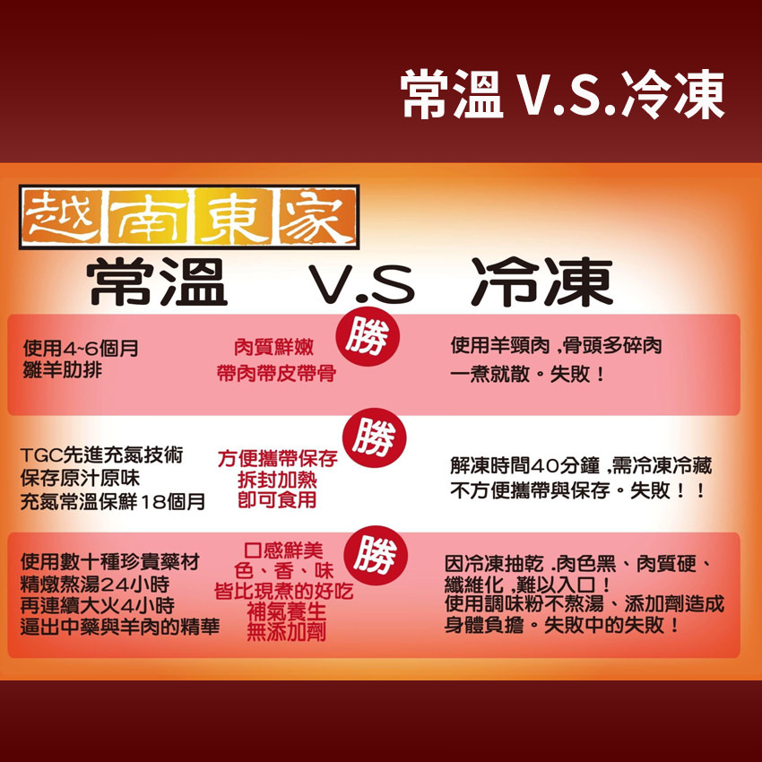 內容物:精燉高湯( 水、雞骨、豬骨、薑、絞肉、食鹽、味精、辣椒)、羊肉、油蔥、豬油、黑棗、黨蔘、枸杞、廣皮、胡椒、桂皮