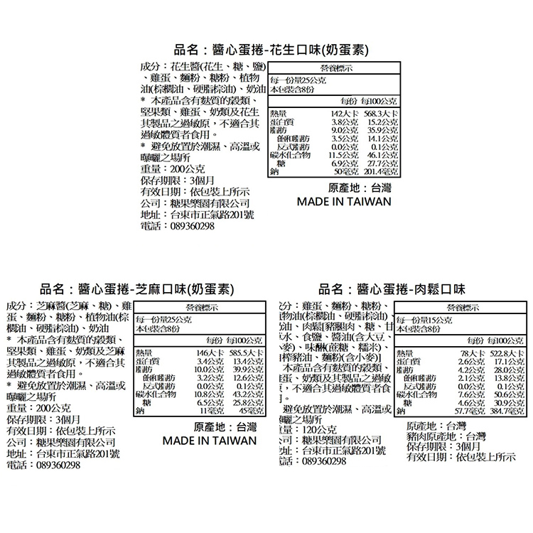 產品內容: 醬心蛋捲10盒組(花生*4、芝麻*4、肉鬆*2)