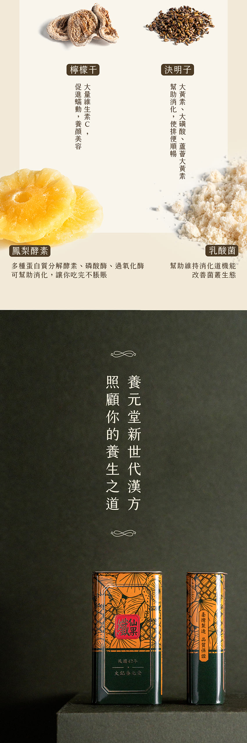 養元堂推出的第三支生活漢方GMP廠食品系列,高達10種天然成分的纖仙果,小小一顆讓你開啟通透世界!文創感十足的包裝方便攜帶,百分百台灣GMP廠的生產線製造