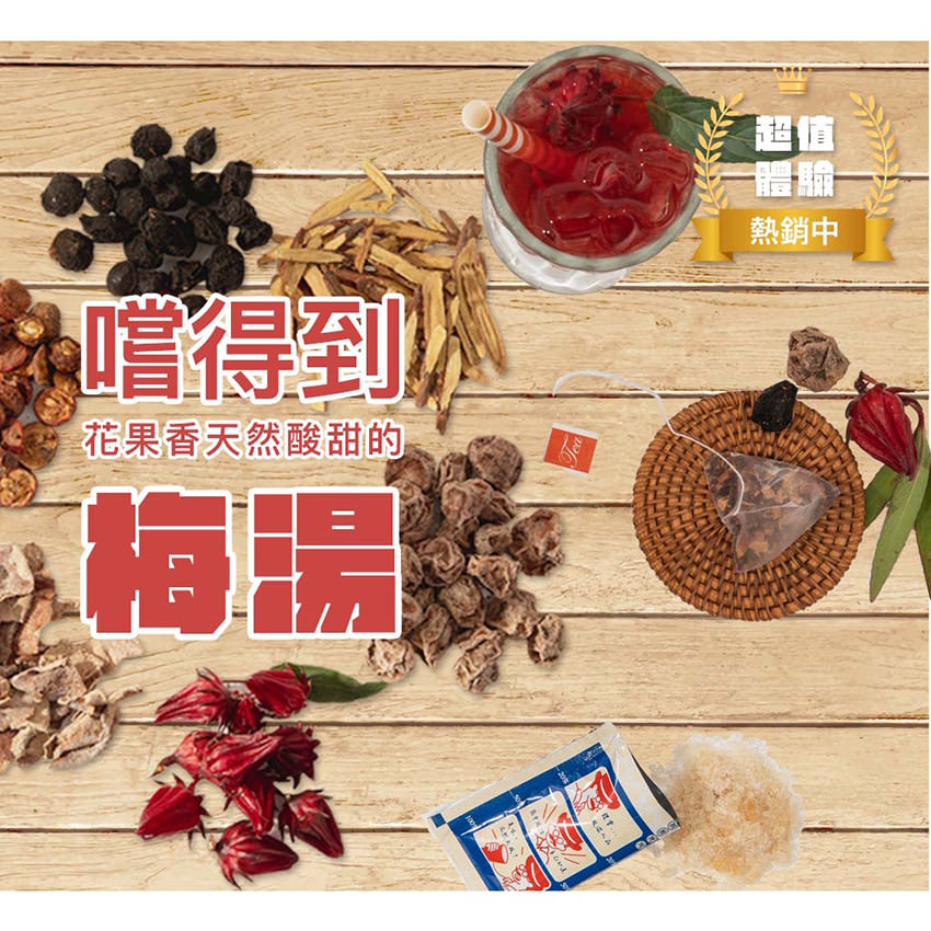▶梅湯茶包:洛神、山楂、陳皮、甘草、甘甜梅、烏梅