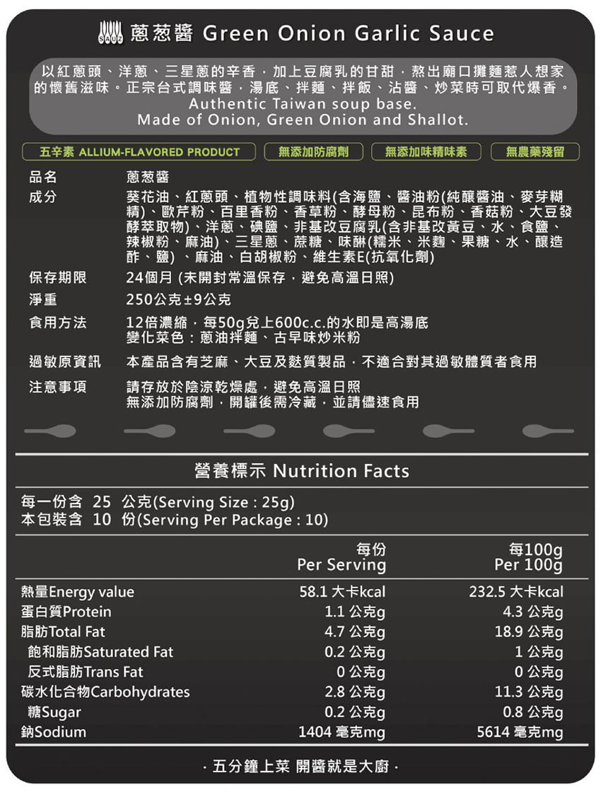 蔥葱醬Onion & Shallot Sauce(五辛素)
