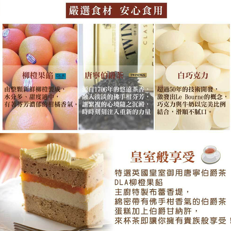 佛手柑香氣的伯爵茶, 搭配DLA柳橙果餡, 獨家特製滑順伯爵甘納許, 獨特的美味,一吃就愛上!