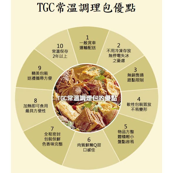 內容物:精燉高湯( 水、雞骨、豬骨、薑、絞肉、食鹽、味精、辣椒)、羊肉、油蔥、豬油、黑棗、黨蔘、枸杞、廣皮、胡椒、桂皮