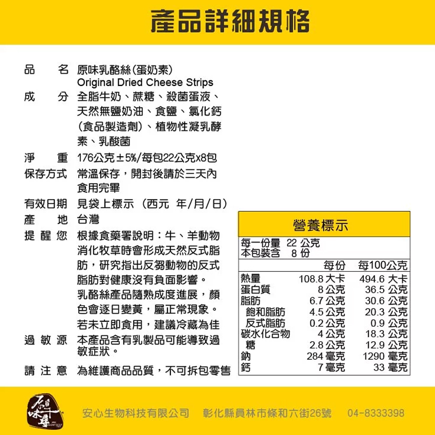 品 名|原味乳酪絲(蛋奶素)