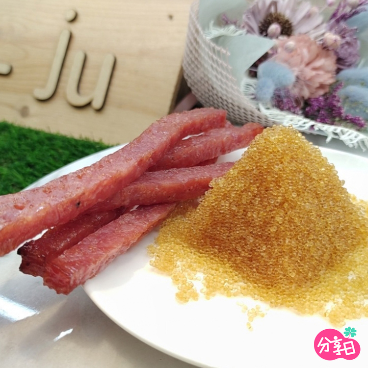 ▶2021最新人氣商品,以熬製四小時的天然柴魚昆布高湯調味,並以真空按摩機把高湯打入肉乾裡面,再搭配上大量飛魚卵製成,帶有大量海洋鮮味的飛魚卵肉乾, 讓您每吃一口都有飛魚在嘴中彈跳"嗶嗶啵啵"的口感,而且冰過的飛魚卵會愈好吃唷!