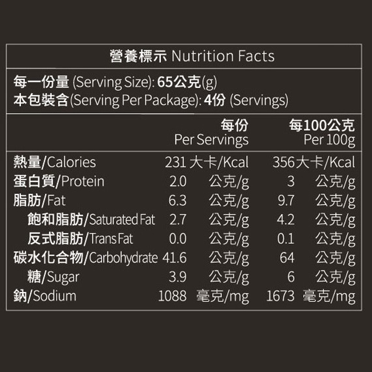 ➤成份: 冬粉:馬鈴薯澱粉、綠豆澱粉、水 調味料包: 鹽、乳糖、鮮味劑(胺基乙酸、5‘-次黃嘌呤核苷磷酸二鈉、5’-鳥嘌呤核苷磷酸二鈉、琥珀酸二鈉、DL-胺基丙酸)、柴魚粉、焦糖粉 油包:棕櫚油、紅葱頭、醬油、維生素E(抗氧化劑)配料包: 乾燥高麗菜、紅蘿蔔、香菇、芋頭、海帶芽、豆皮、白芝麻.