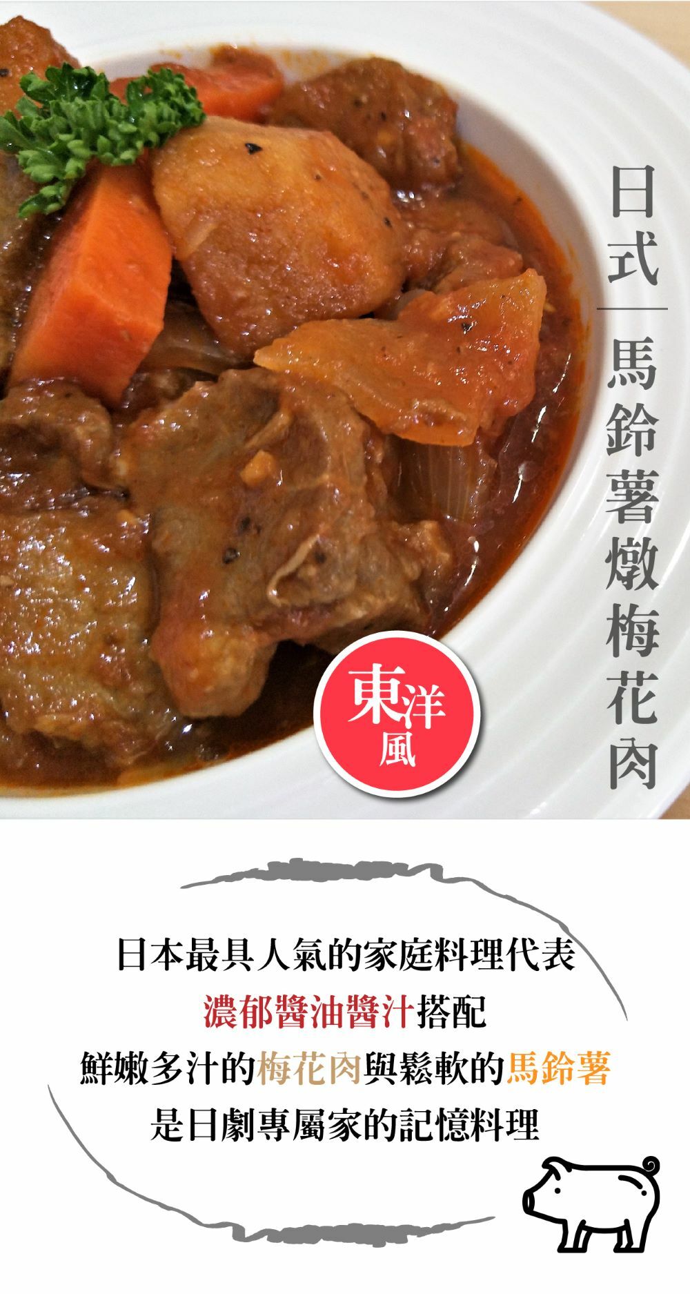 ➤鮮嫩多汁的梅花肉與鬆軟的馬鈴薯是日劇專屬家的記憶料理