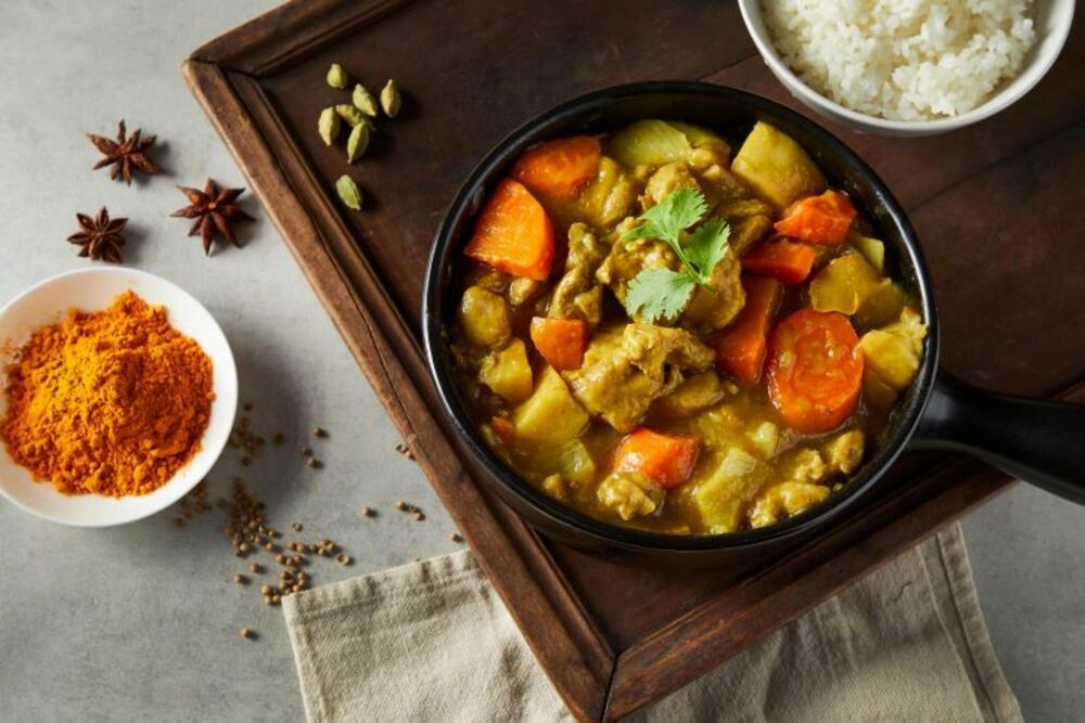 ● 加入椰漿、咖哩粉及洋蔥燉煮