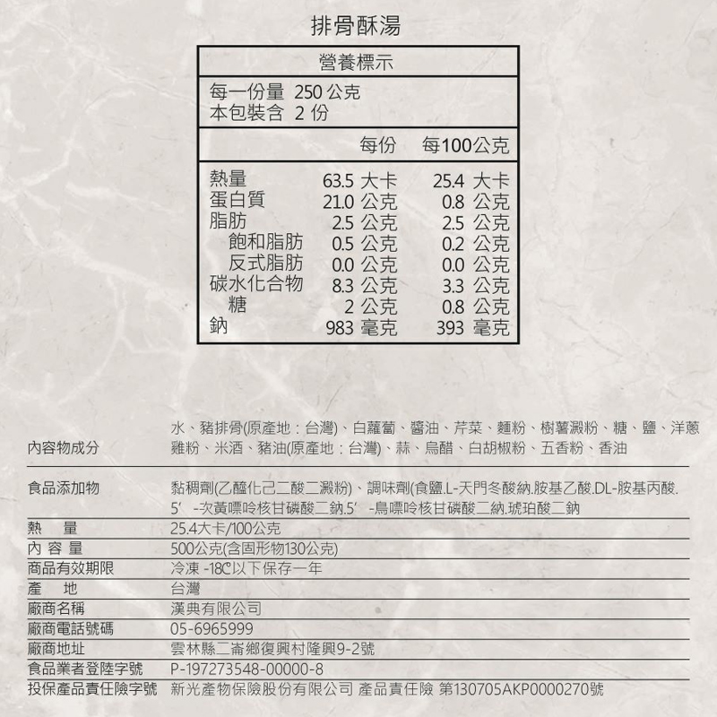 ➤品名:【漢典食品】排骨酥湯