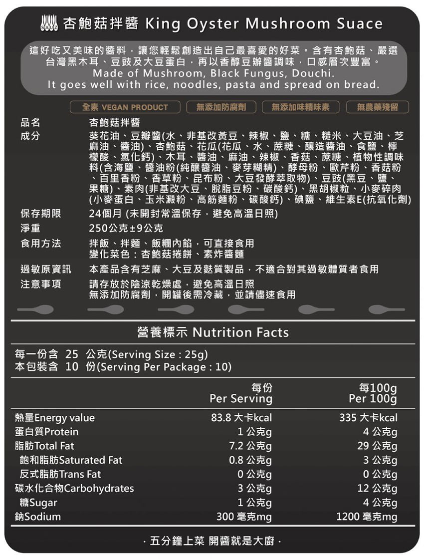 杏鮑菇拌醬King Oyster Mushroom Sauce(純素)