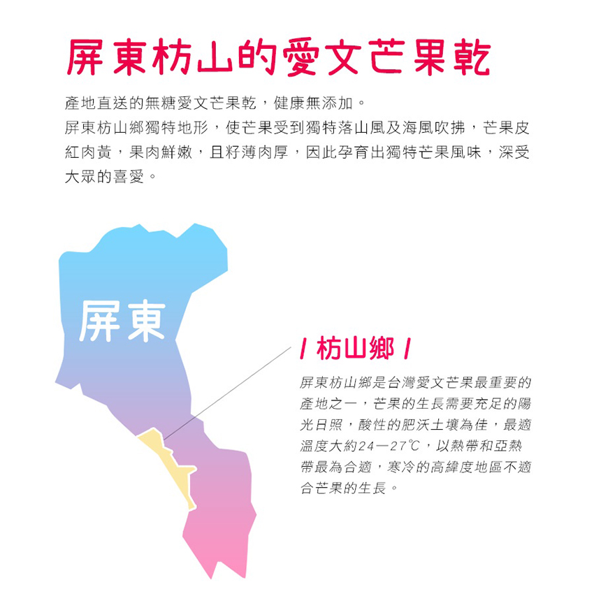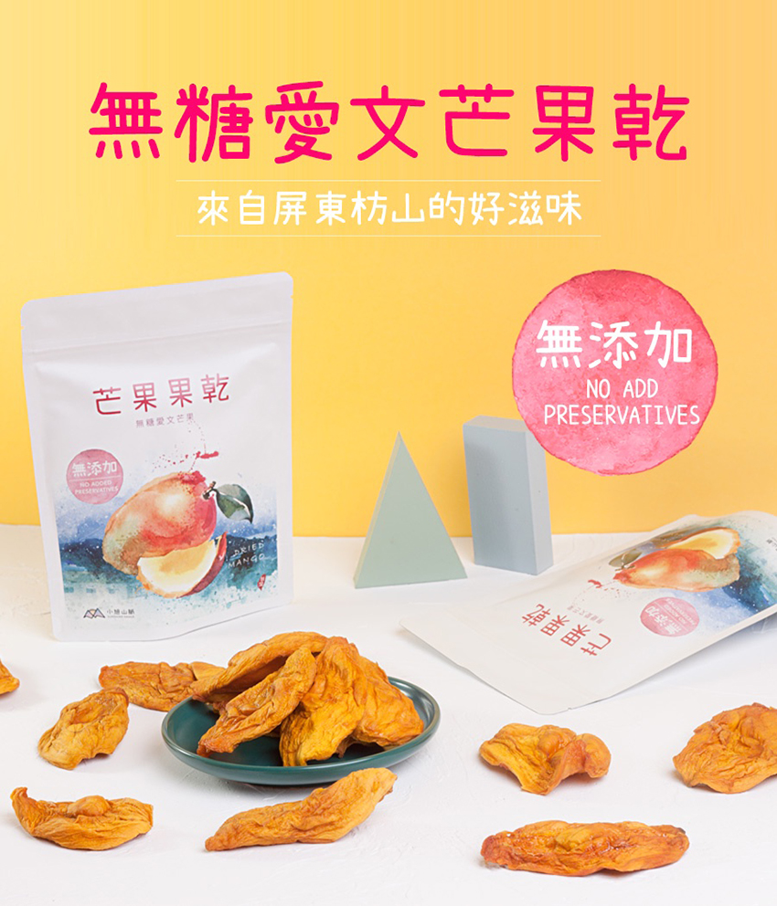 ◆商品名稱 : 【小旭山脈】無添加無糖愛文芒果乾 DRIED MANGO-1入(100g/包)