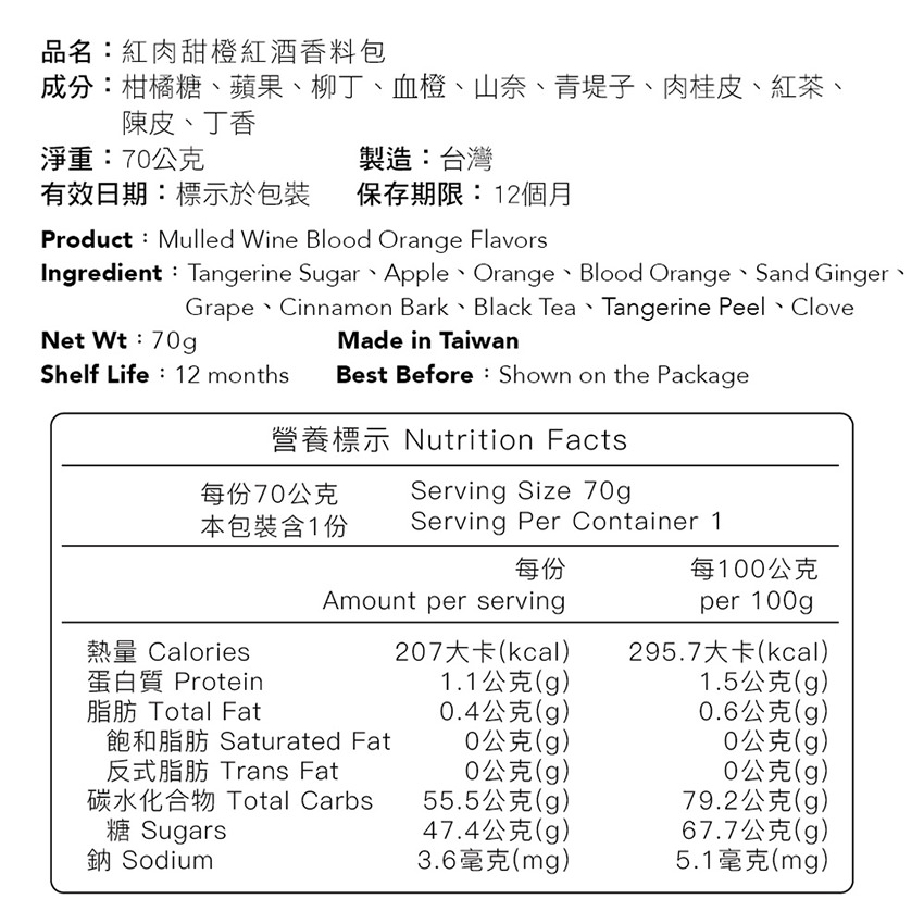 ◆商品名稱 : 【小旭山脈】紅肉甜橙紅酒香料包-750ml紅酒適用大份量