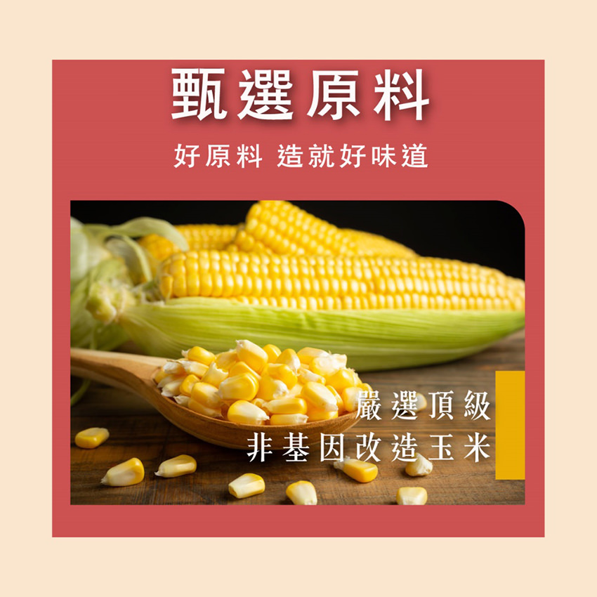 成份: 玉米粒(非基因改造)、蔗糖、棕櫚油