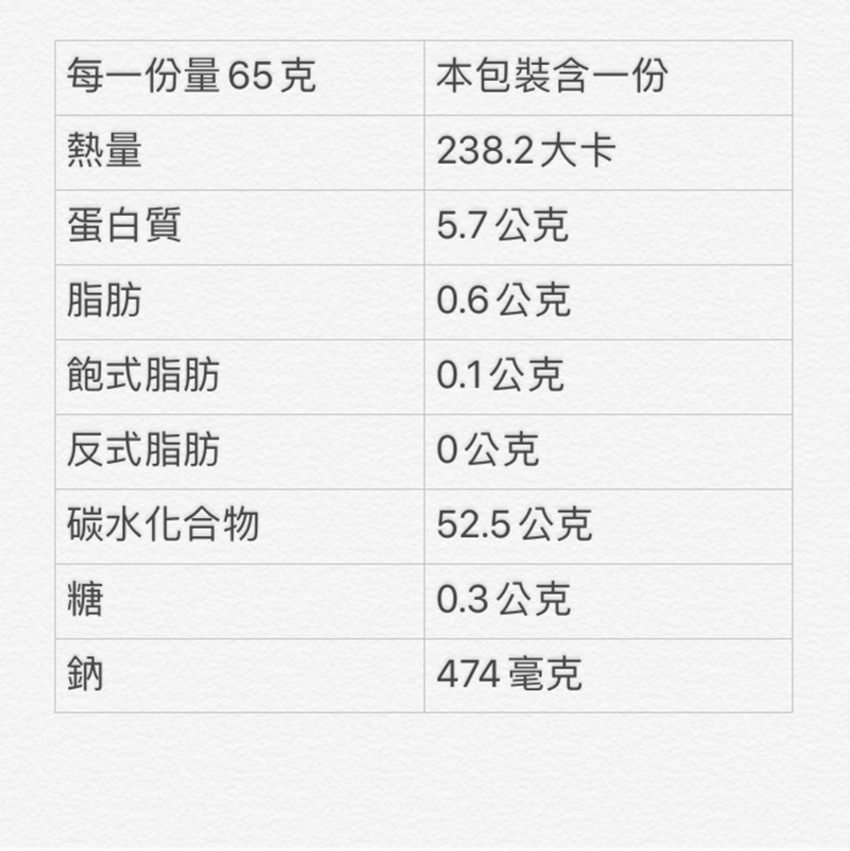 麵粉、樹薯澱粉、羥丙基澱粉、食鹽、複方乳化劑(甘油、精緻大豆油、大豆卵磷脂、脂肪酸聚合甘油脂)