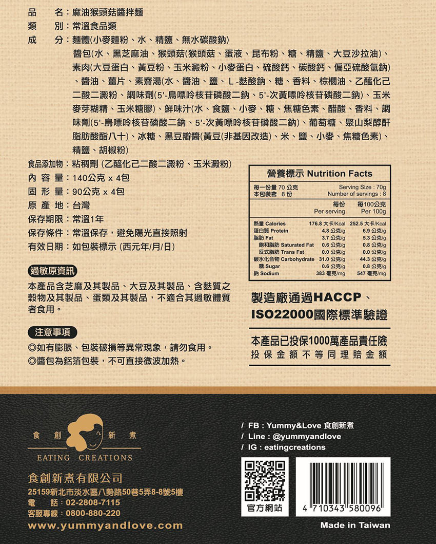 麻油猴頭菇醬拌麵