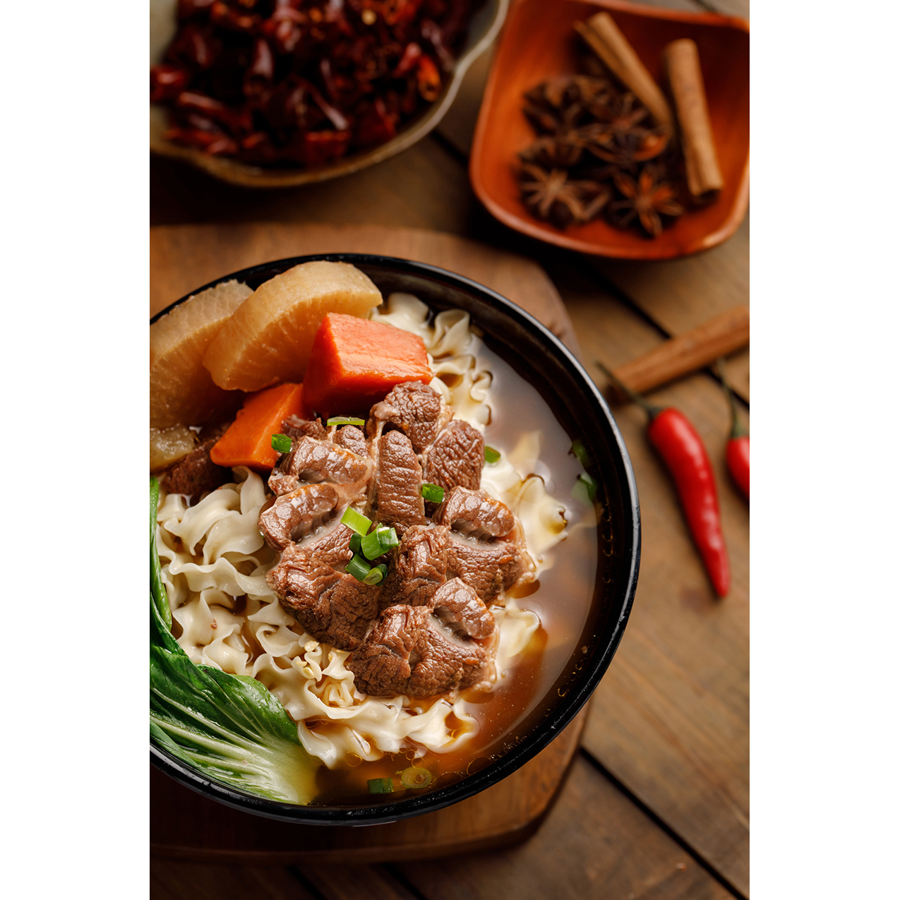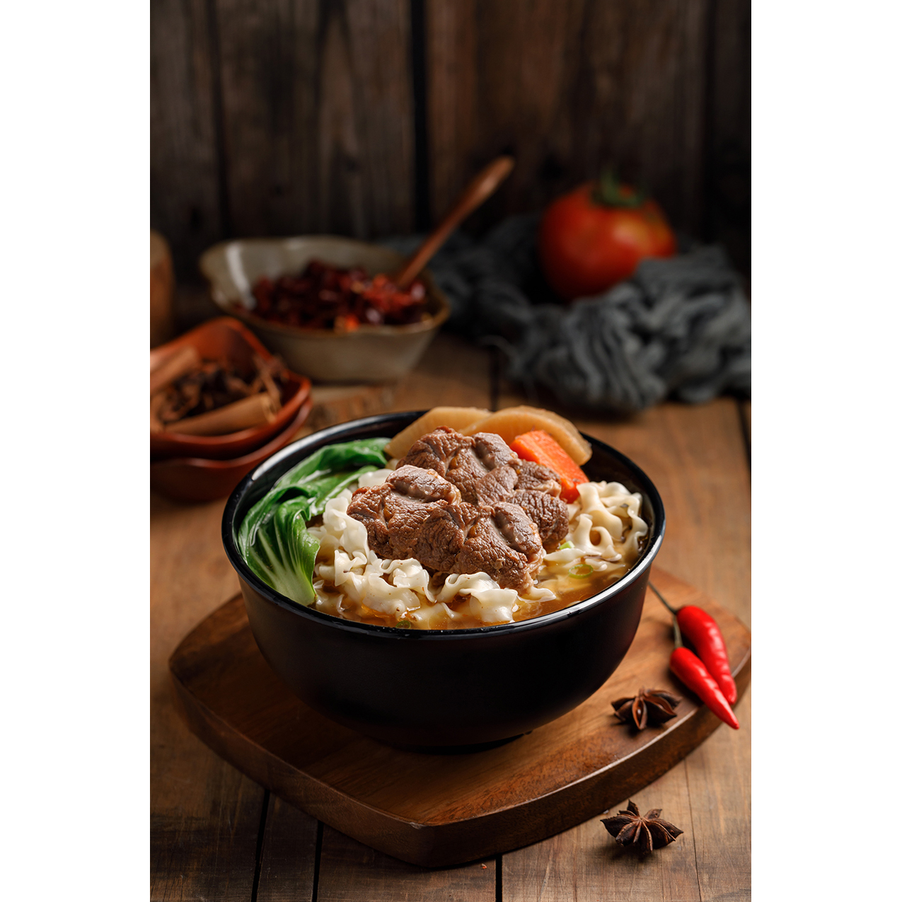 讓你在家輕鬆能享用到源自台灣道地好味道,祖傳的秘製配方,湯頭融入牛肉的精隨,清爽不死鹹,別於市面上牛肉調理包,加入新鮮的紅蘿蔔與白蘿蔔,讓紅燒的湯頭溫潤清甜。