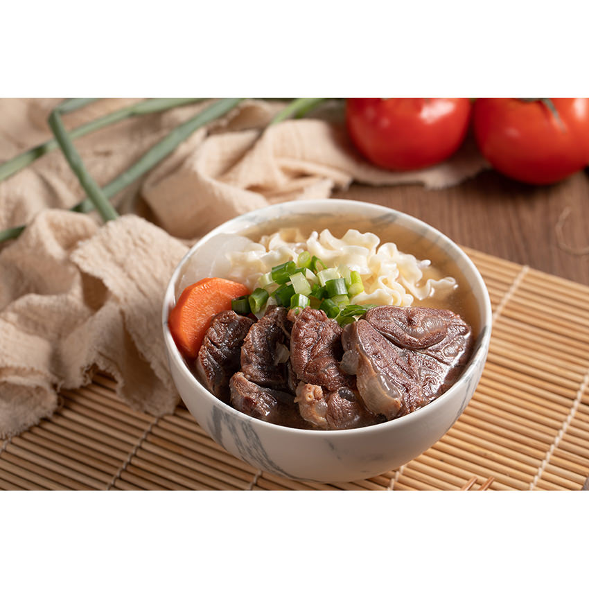 嚴選牛腱心,是牛腱中筋肉比例最好的部位,這個部位筋多肉質硬實,含有豐富的膠原蛋白,佈滿細筋,獨特高溫高壓殺菌技術燉煮,讓整個肉汁排空後再重新吸回肉汁,每一塊牛腱肉皆軟嫩入味,讓你在家輕鬆能享用用到源自台灣道地好味道,清甜的湯頭採用了數種中藥配方以及大量蔬食配方熬煮,湯頭溶入牛肉的精髓,清爽不死鹹,別於市面上牛肉麵調理包,加入新鮮的紅蘿蔔與白蘿蔔,讓清燉的湯頭更加清甜
