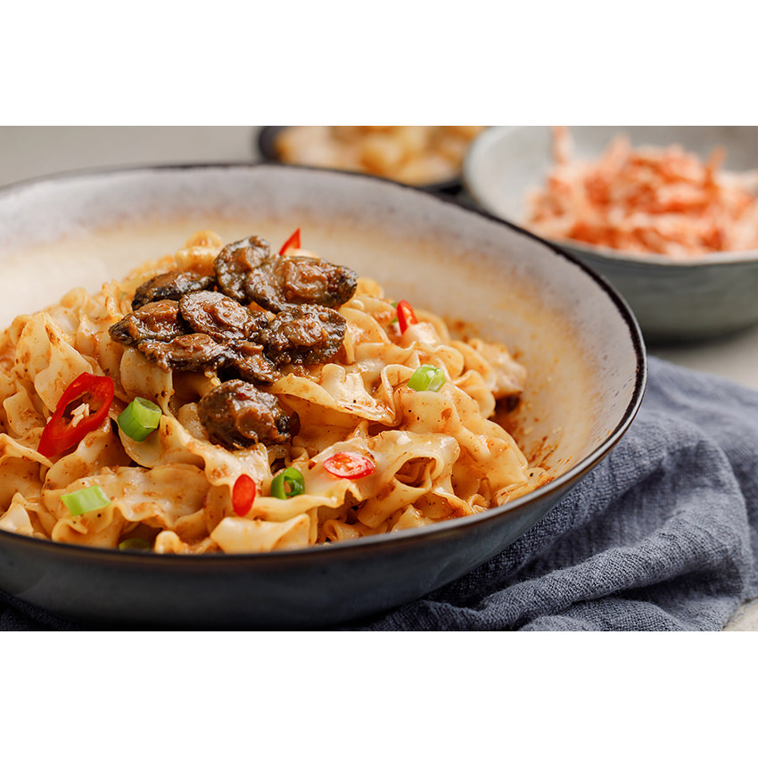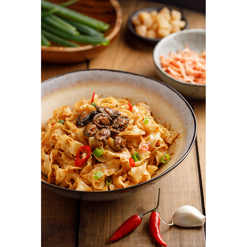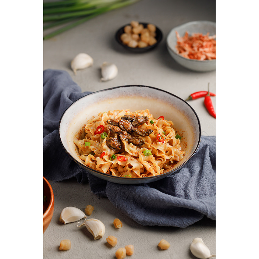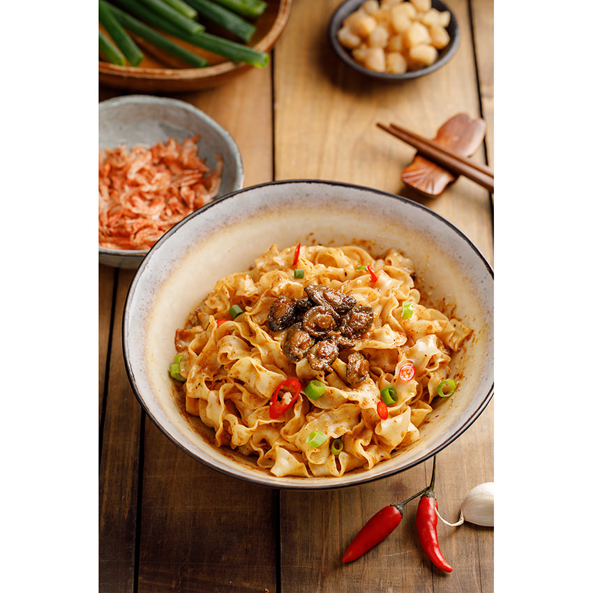 集「鮮、辣、香」為一體,吃起來香辣鮮味十足,做為乾拌麵佐料,皆能品嚐海鮮的豐富滋味,極致奢華,可謂乾拌麵中的極品。