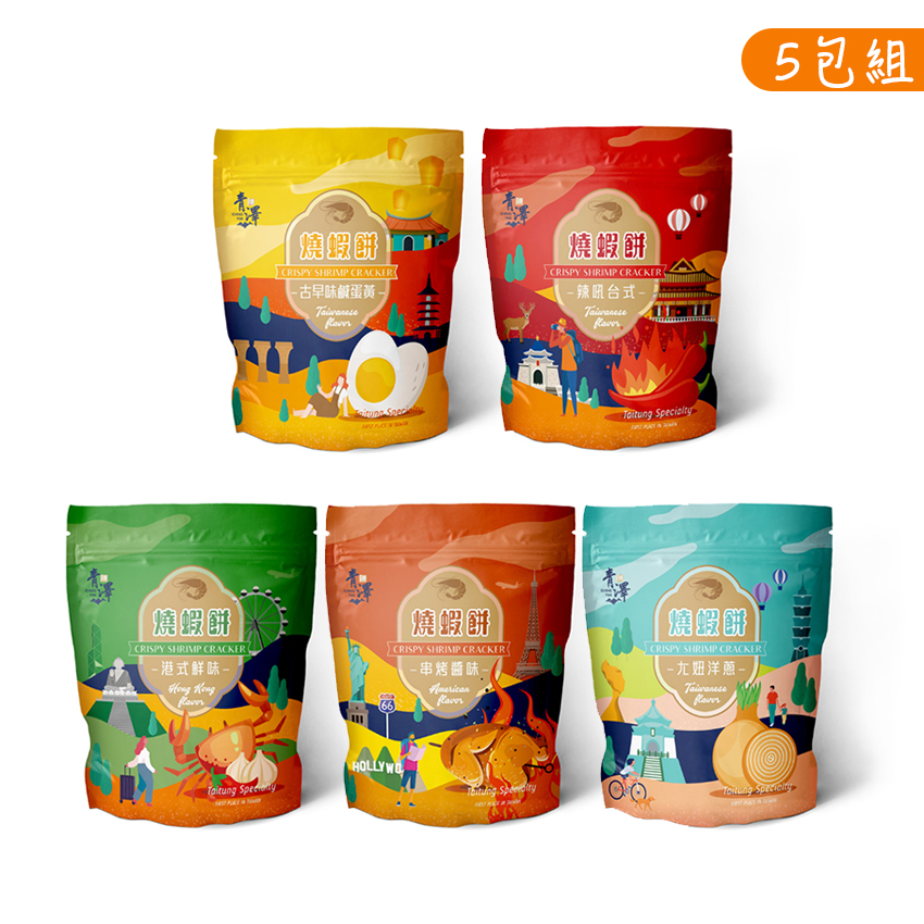 產品內容: 蝦燒餅5包組(綜合口味:鹹蛋黃口味 辣吼台式口味 ㄤ妞洋蔥口味 港式鮮味口味 串烤醬味口味)